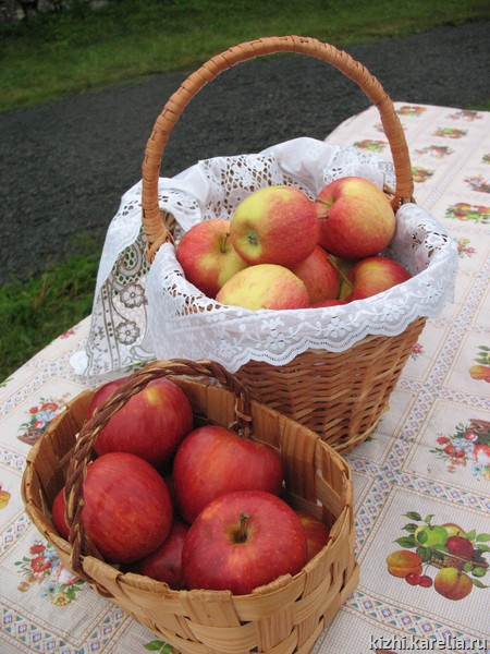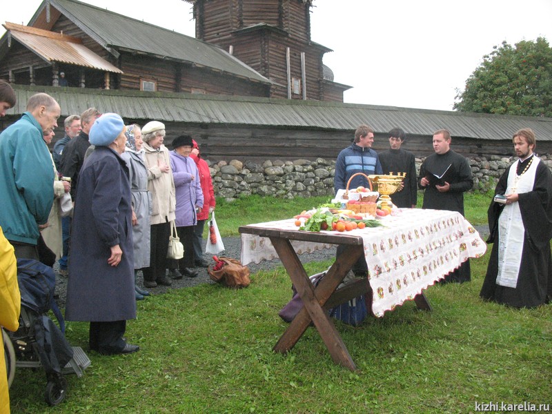 Как правило, к этому времени в Заонежье поспевал урожай, и прихожане в этот день несли в храм на освящение плоды своих трудов. В России к 19 августа созревали яблоки, поэтому на освящение преимущественно приносили их. И в этот день на острове Кижи прихожане принесли на освящение не только плоды со своих огородов, но и яркие пахучие яблоки, пусть даже и купленные, но от этого не менее вкусные, тем более после освящения.