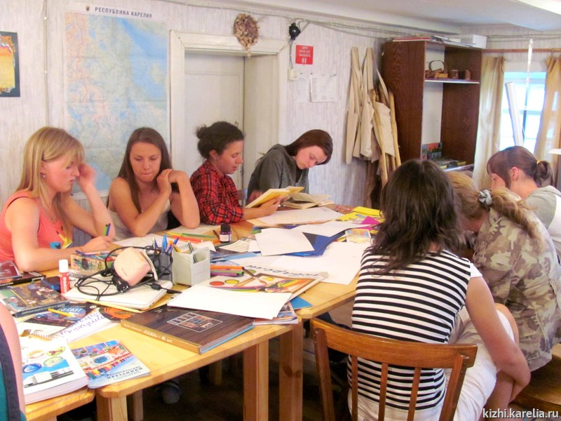 Первыми на остров приехали студенты-культурологи из Российского государственного педагогического университета им. А.И. Герцена. Факультет философии человека РГПУ сотрудничает с Детским музейным центром с 2007 г. В этом году в ходе практики студенты подготовили материалы для одного из разделов мультимедийной хрестоматии «Всемирное наследие России», посвященного музею-заповеднику «Кижи». Хрестоматия является частью целостного учебно-методического комплекса и дополняет программу элективного курса для 9 класса. В этом сборнике будут представлены особо ценные культурные объекты отечественного наследия в непривычном, литературном, образе. Такие разделы энциклопедии, как «Воспетый пером поэта», «Художественная проза», «Личный взгляд» помогут школьникам познакомиться с великим культурным наследием страны через яркие художественные образы и различные жанры словесного искусства.