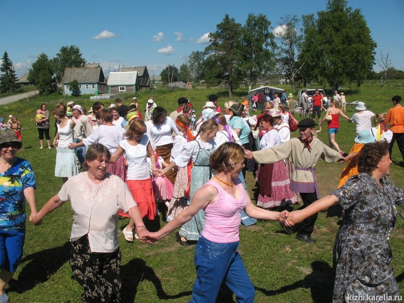 Толвуйский коллектив «Заонежанка» представил совместное выступление школьников и взрослых: школьники шестого – одиннадцатого классов станцевали кадриль под пение взрослого состава коллектива. Исполнив пятую фигуру заонежской кадрили, толвуяне образовали перед дощатым помостом-сценой круг, призывая в него местных жителей и заезжих гостей праздника. Под сопровождение гармошки и пение круг разрастался, перемещаясь по поляне, всем было весело.