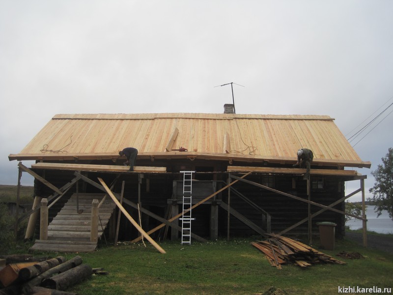 Реставрационные работы на кровле дома Левичева по конкурсу выиграла подрядная организация ЗАО «Архитектурно-реставрационный центр «Заонежье», директор В. Скопин. Специалистами Центра были заменены «быки», которые поддерживают заднюю, или сарайную, часть памятника. Отреставрирован взвоз дома.