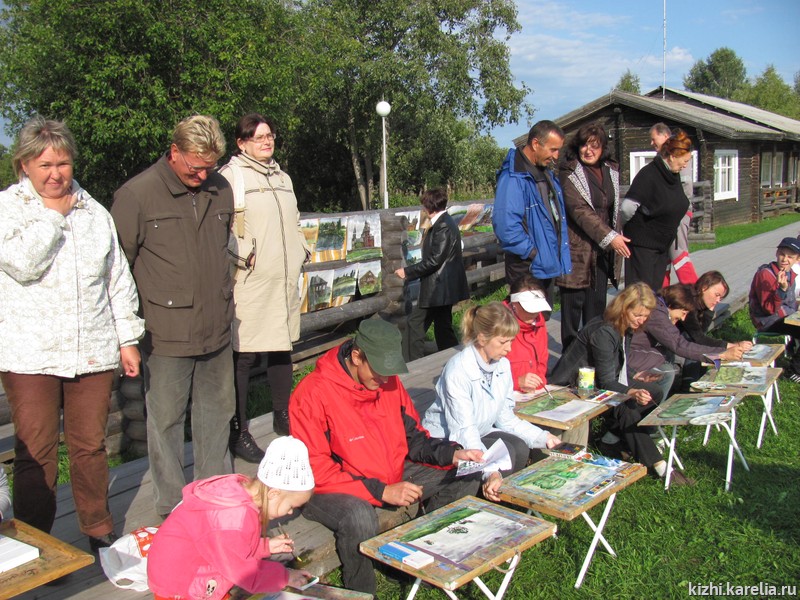Формы защиты проекта тоже разные: и выставка рисунков, и музыкально-литературная композиция, и презентация альманаха, мультфильма, видеофильма, макета часовни. Ярким событием стала выставка детей студии «Кижская палитра» — «дорожка» из рисунков, ведущая к Кижскому архитектурному ансамблю. Туристы из Германии, Франции задавали детям вопросы, - можно ли купить рисунки и сколько они стоят? Есть вопросы, которые заставляют задуматься. А сколько стоят блики солнечного света на куполах кижских храмов? Веер облаков над Преображенской церковью? Детское творчество не имеет цены, оно бесценно.