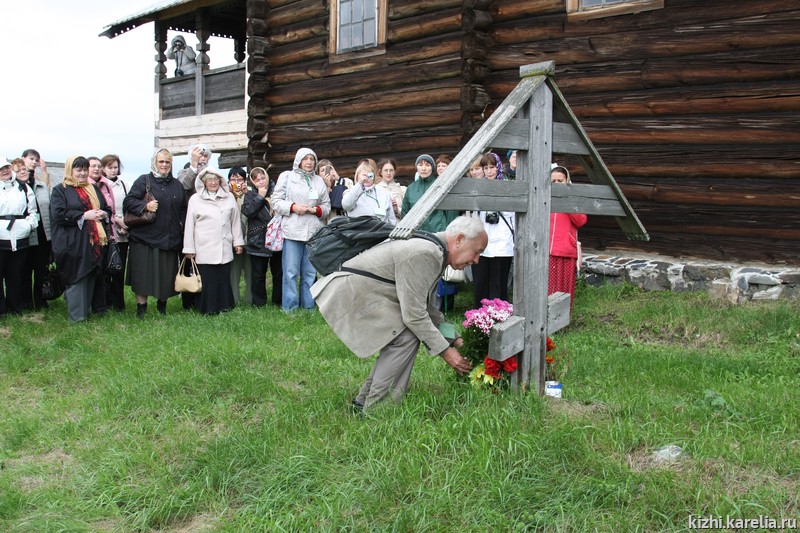 - — Тогда уже реставрация церквей в Кижах была в полном разгаре. Но там так было: Преображенскую почти закончили и Покровскую, колокольня была в первозданном виде. Там очень симпатичный старичок был, смотритель. Эрна Васильевна Померанцева договорилась, и мы провели два дня и одну ночь в Кижах в доме Ошевнева, который недавно перевезли. И нам его как квартиру дали. Весь состав экспедиции был полностью, мы еще не разделились. Мы еще запись, собственно, не начинали. Старик этот, смотритель, открыл нам – ключи у него были – одну церковь, другую. Кладбище еще не было упорядочено, и ограды не было, просто фундамент остался. «Только, - говорит, - ни в коем случае на колокольню не лезьте». Но если есть запрет – это как сюжет волшебной сказки: он обязательно должен быть нарушен. Залезли на колокольню. Какой вид там открывается! Бог знает, куда видно: эти острова, лодки, кое-где кораблики. Вечером – рыбу ловить. А там мелководье везде возле берега. Ничего, по-моему, не поймали, но воспоминаний! Почти ночь, а мы рыбу ловим.