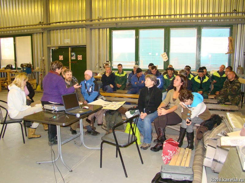 За два дня, проведённых на острове Кижи, финские коллеги познакомились с природными особенностями острова, с организацией жизни сотрудников и деятельностью музея-заповедника, а также с основными объектами, такими как входная зона, пункт сбора отходов, пассажирский и грузовой причалы, пресс для картона, склад ГСМ, производственно-реставрационный комплекс, гараж.