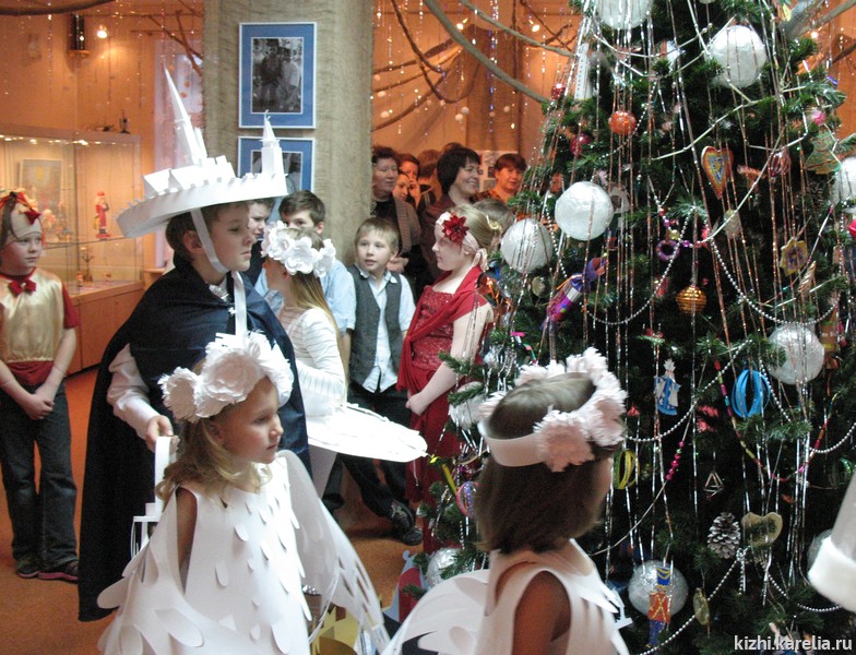 В России празднование Нового года 1 января началось с 1699 года, когда Петр Первый приказал всем жителям городов украсить крыши и ворота домов ветками хвойных деревьев. На выставке посетители узнают, как елка превратилась в рождественское дерево и как в нашей стране менялась мода на ее убранство. В XIX — начале XX века в России существовал определенный порядок украшения елки: на верхушке — Вифлеемская звезда, вокруг нее — ангелы и кометы, ниже — «тварный мир» — вол, осёл, образы которых связывались с волхвами, прибывшими в Вифлеем. Все остальные игрушки размещались в средней и нижней частях елки и символизировали царство земное. Вокруг елки располагались сделанные из картона макеты крепостей или замков. В центре зала гостей будет елка, наряженная в соответствие с рождественской традицией детьми из музейной студии материально-художественного творчества «Кижская палитра» под руководством Светланы Петряковой. Выставочное пространство будет наполнено разнообразными рисунками и поделками новогодней тематики, изготовленными руками студийцев.