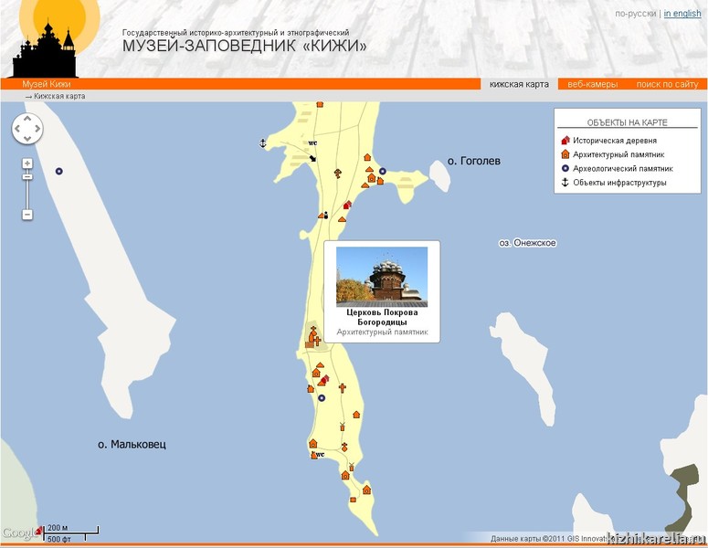 На музейном сайте опубликована единая интерактивная карта, на которой отмечены исторические деревни Кижской волости, архитектурные и археологические памятники, а также объекты инфраструктуры. Таким образом подробная информация о каждом объекте острова Кижи стала доступна «в один клик» с одной страницы сайта.