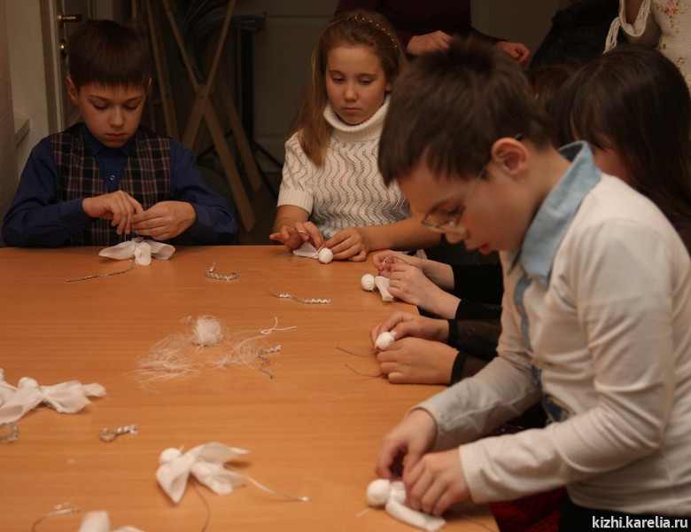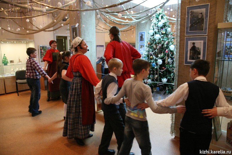 Посетители музея — и взрослые, и дети с удовольствием учились делать своими руками замечательный новогодний подарок — рождественского ангела. По традиции, светлую и радостную атмосферу Рождества создавало представление рождественского Вертепа. А в завершении программы гости принимали участие в весёлых народных играх и танцах, проводимых участниками Фольклорно-этнографического театра музея «Кижи».