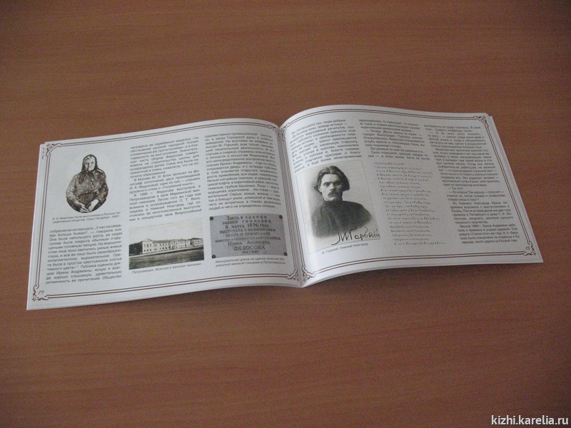Текстовые исторические материалы иллюстрируются редкими фотоматериалами из фондов Государственного историко-архитектурного и этнографического музея-заповедника «Кижи», Научного архива института языка и литературы КарНЦ РАН, Национального архива Республики Карелия. В связи с ограниченным количеством семейных фотографий И.А. Федосовой, авторы сочли возможным дополнить текст современными героине фотоматериалами из коллекций Г.А. Круковского и К.К. Романова. По этим материалам можно живо представить эпоху, в которую жила и творила Ирина Федосова, быт заонежской деревни, крестьянские дома и народный костюм XIX века.