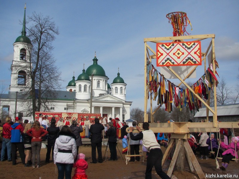 Из деревни Тервеничи приехал коллектив с красивым названием «Оятские хорошечки». Молодые девушки показали хоровод знакомства, назвав его «Оятский, поцелуйный». И снова зрители стали участниками нового варианта хоровода, который постепенно переместился к настоящим большим качелям. Эти качели являются неотъемлемой частью праздника. На них помещается сразу несколько (иногда до 7-10) человек. В такой день качание считалось особенным — счастливым. Все желающие могли с удовольствием покачаться на таких «счастливых» качелях.