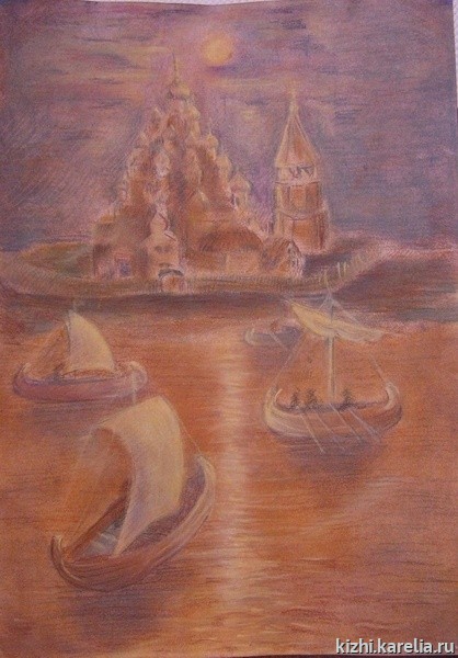 Больше всего удивили работы детей, живущих в центральной России, далеко от Онежского озера, но, тем не менее, чутко почувствовавших красоту Русского Севера и традиционной заонежской лодки-кижанки.
