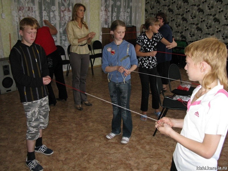 Кроме подарков для детей была подготовлена интерактивная программа, которая состояла из фильма «Шесть дней творения», рассказывающего о проектах Летней музейно-этнографической школы, а также слайд-презентация об участии воспитанников детского дома в мероприятиях музея «Кижи». После этого, ребята с увлечением играли в «Кижское домино», пазлы на музейную тематику, выполняли задание «Собери крышку мельницы «Сампо» и разгадывали таинственные предметы «Черного ящика». Все приняли участие в мастер-классе «Заонежский оберег».