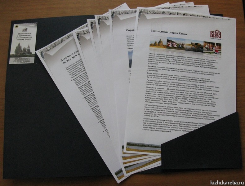 Гостям будет презентована новая карта-путеводитель по музею-заповеднику «Кижи». Участники встречи получат для своей работы каталоги услуг музея «Кижи» на 2010 год и календари музейных праздников.
