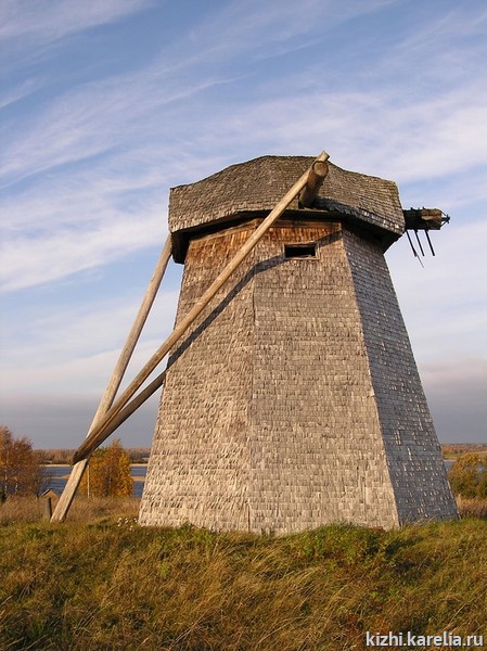 Ветряная мельница в деревне Середка – один из 83 памятников архитектуры в музее-заповеднике «Кижи» и единственный, покрытый дранкой.