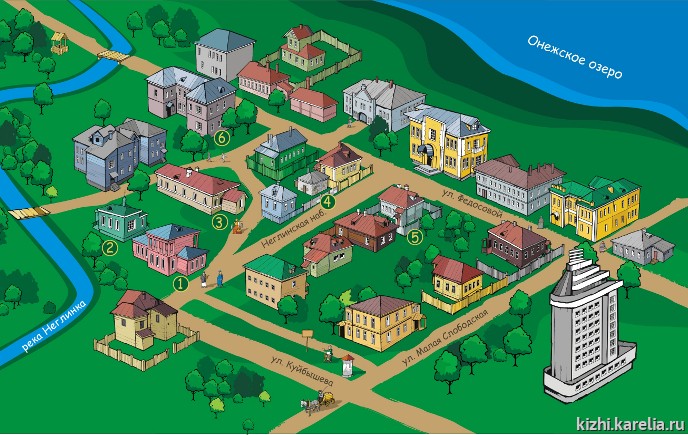 Типичными улицами Петрозаводска в игре выступают улицы квартала исторической застройки — ул. Федосовой, Неглинская набережная, ул. Малая Слободская. Облик старого Петрозаводска создают рисованные изображения расположенных на них в настоящее время жилых домов и общественных зданий. Таким образом, здесь исторический квартал выступает как миниатюра, типичный уголок Петрозаводска рубежа XIX—XX веков.