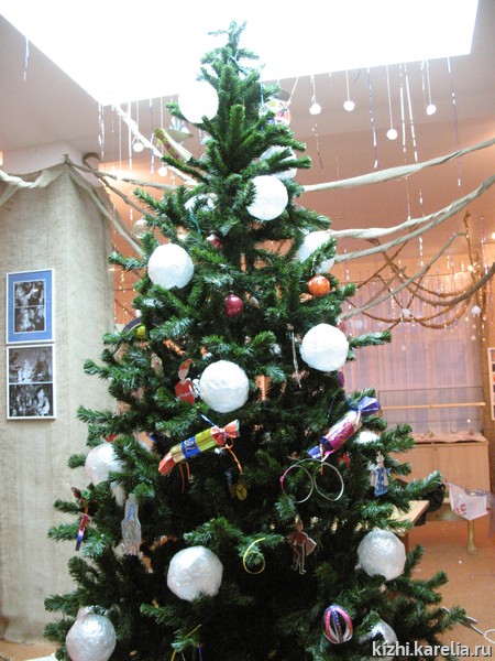 В России празднование Нового года 1 января началось с 1699 года, когда Петр Первый приказал всем жителям городов украсить крыши и ворота домов ветками хвойных деревьев. На выставке посетители узнают, как елка превратилась в рождественское дерево и как в нашей стране менялась мода на ее убранство. В XIX — начале XX века в России существовал определенный порядок украшения елки: на верхушке — Вифлеемская звезда, вокруг нее — ангелы и кометы, ниже — «тварный мир» — вол, осёл, образы которых связывались с волхвами, прибывшими в Вифлеем. Все остальные игрушки размещались в средней и нижней частях елки и символизировали царство земного. Вокруг елки располагались сделанные из картона макеты крепостей или замков. В центре зала гостей будет елка, наряженная в соответствие с рождественской традицией детьми из музейной студии материально-художественного творчества «Кижская палитра» под руководством Светланы Петряковой. Выставочное пространство будет наполнено разнообразными рисунками и поделками новогодней тематики, изготовленными руками студийцев.