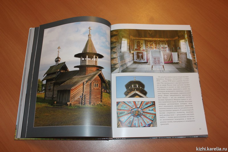 Фотоработы, представленные в альбоме, эмоционально выразительны, и, что не маловажно, памятники музея показаны на них через мимолетные явления природы: на рассвете, в тумане, в тишине красок северного лета и в ярких красках осени.