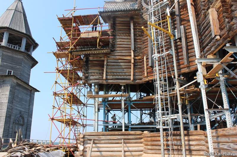 Группа преподавателей и студентов Берлинского университета прикладных наук установила геодезические метки на Преображенской церкви Кижского погоста для контроля деформаций постройки. Руководитель группы профессор Йонс Киклер, инженер-строитель и специалист по деревянным сооружениям, привозит своих студентов на остров уже в пятый раз; многие из них пишут дипломы на тему конструкции и реставрации Преображенской церкви.