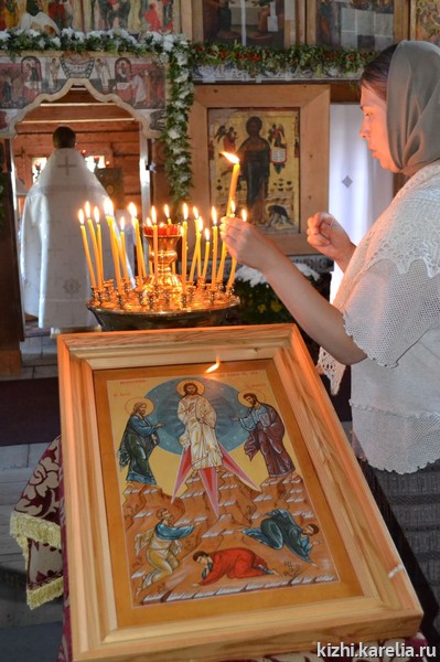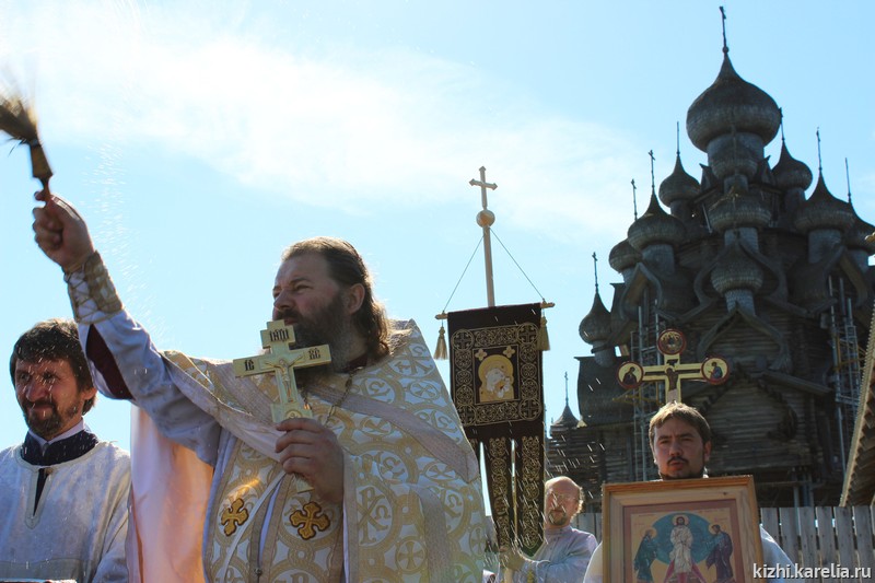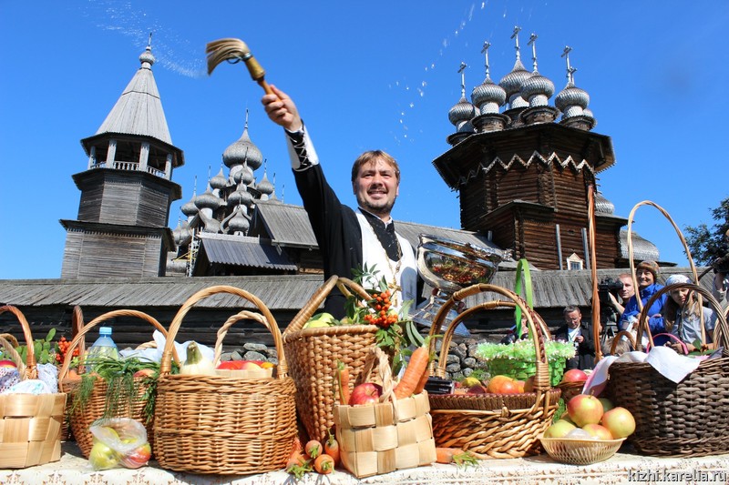 19 августа на Кижах состоялся главный храмовый праздник острова – Преображение Господне. После Праздничной Литургии и Крестного хода вокруг Кижского погоста священник Артемий Корыхалов совершил освящение плодов нового урожая: яблок и других даров природы.