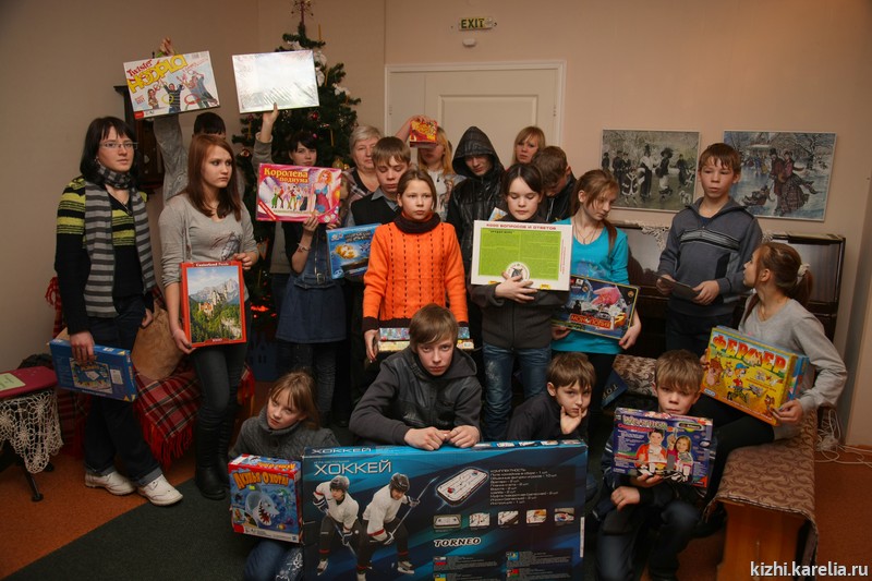 Также сотрудники музея лично собрали около 11 тысяч рублей, на которые было приобретено много интересных современных настольных игр. Дети были просто в восторге! Теперь у них есть «Твистер», «Jenga», «Настольный хоккей», «Монополия» и много других интересных игр. Ну и конечно же, каждый получил сладкий подарок от музея «Кижи».