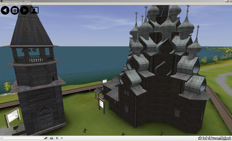Для того чтобы создать трёхмерный Кижский погост, в ноябре разработчики модели провели лазерное сканирование памятника ЮНЕСКО. Модель ещё будет дорабатываться, дополняться новыми объектами и функциями, но уже сегодня можно не только походить по Кижам, но и полетать над островом, встретить других виртуальных туристов, обменяться с ними впечатлениями в чате или по голосовому каналу. Посетители могут пользоваться 3D-очками или 3D-монитором.