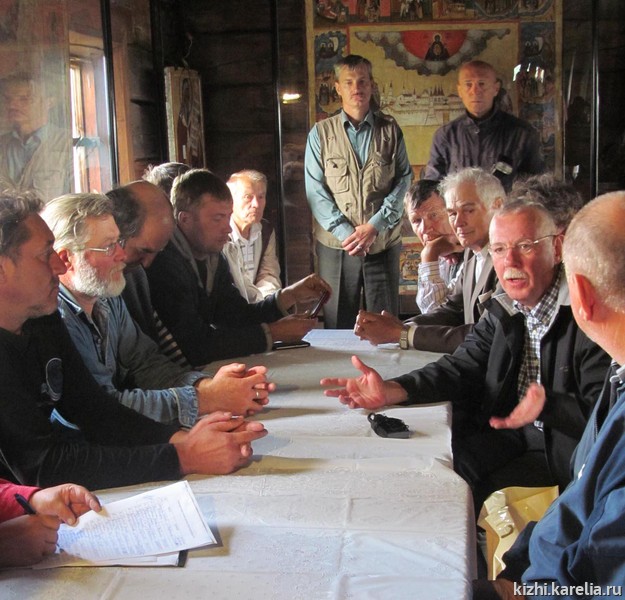 В трапезной церкви Покрова Пресвятой Богородицы состоялся Мирской сход старост деревень Кижской волости. Институт старост, как необходимую форму местного самоуправления, решено возродить по предложению директора музея «Кижи» Андрея Нелидова. Каждая деревня прислала на сход своего старосту, выбранного из наиболее уважаемых жителей деревни. Они единогласно проголосовали за то, что теперь такие сходы будут собираться регулярно, чтобы вместе решать самые насущные вопросы территории. Несколько таких вопросов были обозначены уже в эту первую встречу: реконструкция и расширение кладбища на острове Кижи, строительство отдельного причала для местных жителей и другие. Старосты поблагодарили Андрея Нелидова за внимание к проблемам близлежащих деревень. Следующий Мирской сход состоится в сентябре.