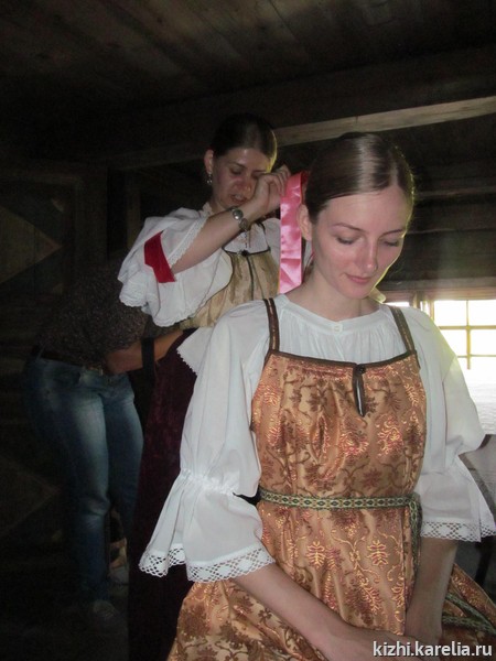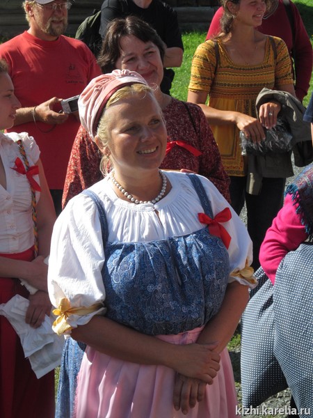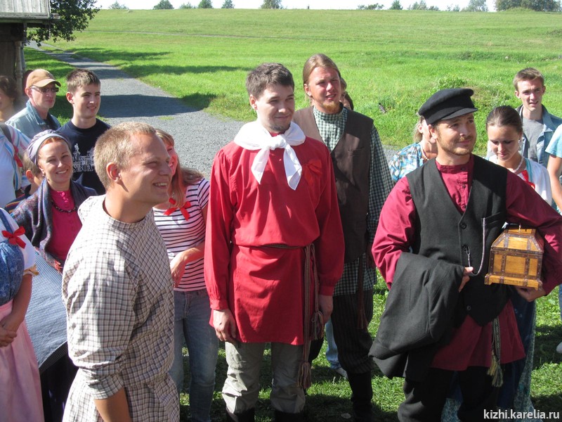 За два месяца до проведения традиционной заонежской свадьбы музей «Кижи» объявил конкурс: пары, желающие «пожениться» во время фестиваля «Преображение», должны были доказать, что именно они достойны стать главными действующими лицами красивого старинного обряда. В итоге победили Анна и Арсений Улановы из Москвы. Семья Анны тесно связана с Карелией — папа родился в Петрозаводске, а в деревне Боярщина, которая является частью исторической Кижской волости, у них много родственников. Анна и Арсений знакомы уже 10 лет, и практически каждое лето приезжают на остров Кижи. Поженились они год назад, и вот теперь, когда представилась такая возможность, ещё раз побывали в роли жениха и невесты, только с соблюдением народных заонежских традиций. Были и весёлые «торги» между сватами, и выкуп невесты, благословение родителей, хороводы, столы с калитками и напитками из ягод, катание на лошадях, ну и, конечно же, много музыки и песен в исполнении фольклорно-этнографического ансамбля музея «Кижи». Как признались Анна и Арсений, этот день они не забудут никогда, и теперь будут отмечать две даты — годовщину их гражданской свадьбы и годовщину заонежского свадебного обряда.