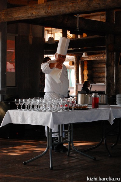 Гостей накормили обедом из национальных карельских блюд, приготовленных поваром ресторана «Карельская горница», специально приехавшим из Финляндии на остров Кижи.