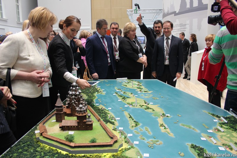 Осматривая кижский раздел выставки, Владимир Мединский обсудил с директором музея Еленой Богдановой перспективы музея-заповедника и пообещал поддержку по трем направлениям: реставрация и сохранение памятников деревянного зодчества, развитие современной инфраструктуры и обеспечение транспортной доступности музея для посетителей, в том числе, в зимний период.
