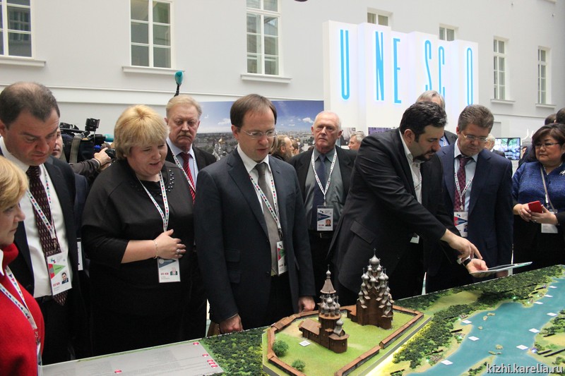 14 декабря в Главном штабе Государственного Эрмитажа на Дворцовой площади Санкт-Петербурга министр культуры России Владимир Мединский открыл выставку, посвященную 25-летию включения в список Всемирного наследия ЮНЕСКО трех первых российских объектов: Московского кремля, исторического центра Северной столицы и Кижского погоста. Выставка является частью IV Санкт-Петербургского международного культурного форума, посвященного 70-летию ЮНЕСКО.