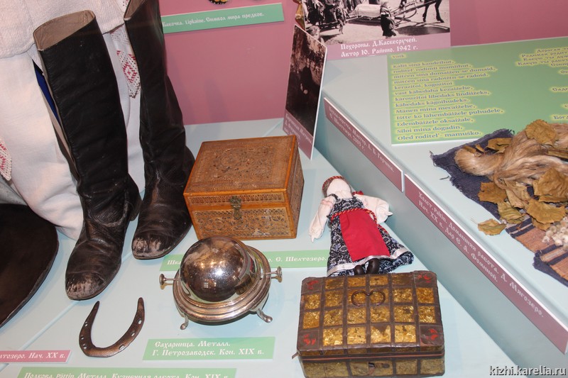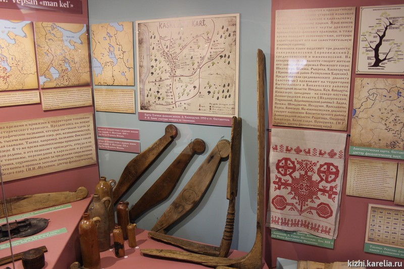 Радушно принял гостей Шёлтозерский вепсский этнографический музей, между двумя музеями давняя дружба, сотрудничество, обмен опытом и идеями. Единственный в России музей, посвященный материальной и духовной культуре вепсов, совсем недавно обновил свои экспозиционные залы: появились новые современные стенды, много технических новинок, поэтому сотрудники музея «Кижи» с большим интересом сходили на экскурсию, которую для них провела директор Шёлтозерского музея Наталья Анхимова.