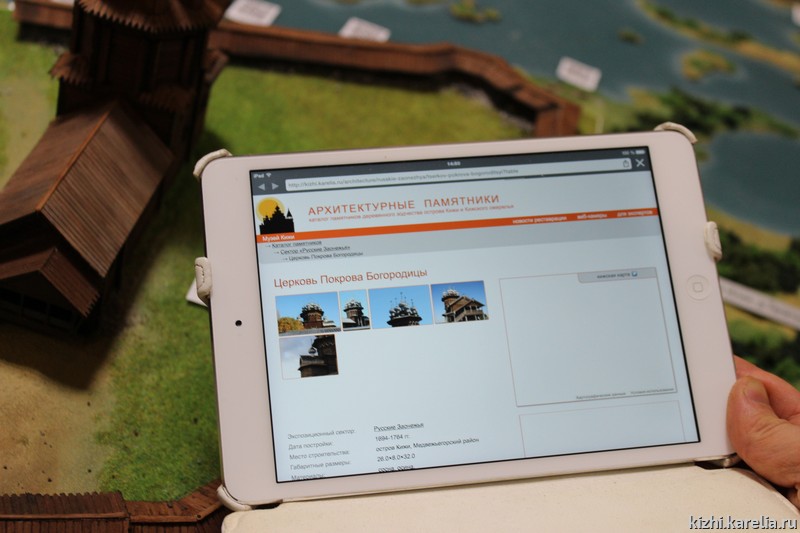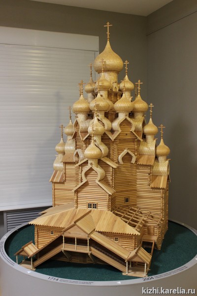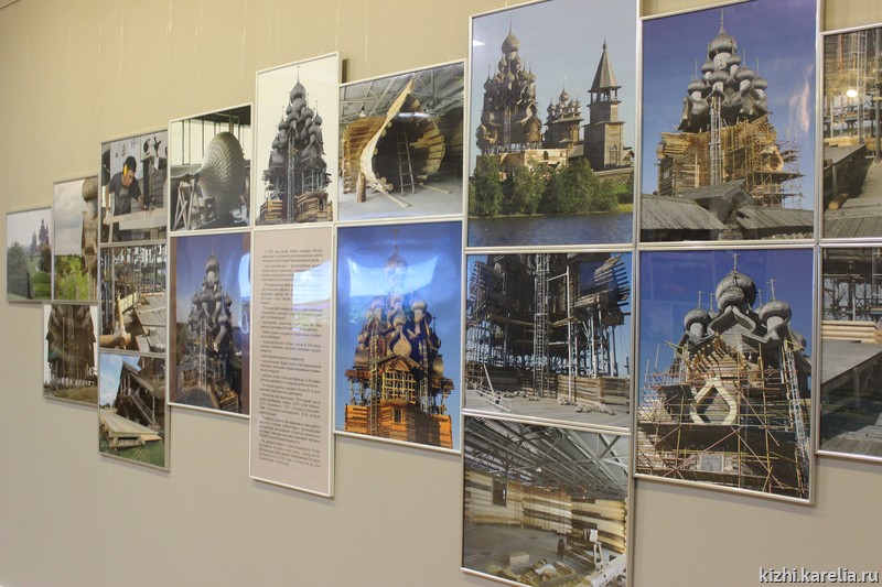 Посетители выставки также увидят прекрасные деревянные макеты Преображенской и Покровской церквей, изготовленные специалистами Плотницкого центра музея «Кижи». Сейчас кижские мастера трудятся над созданием макета колокольни, и в скором времени весь Кижский погост в миниатюре можно будет увидеть в Петрозаводске. Кроме того, на выставке представлен макет системы уникальной системы лифтинга, которая была специально разработана для масштабной и сложной реставрации самого известного храма на острове Кижи — церкви Преображения Господня.