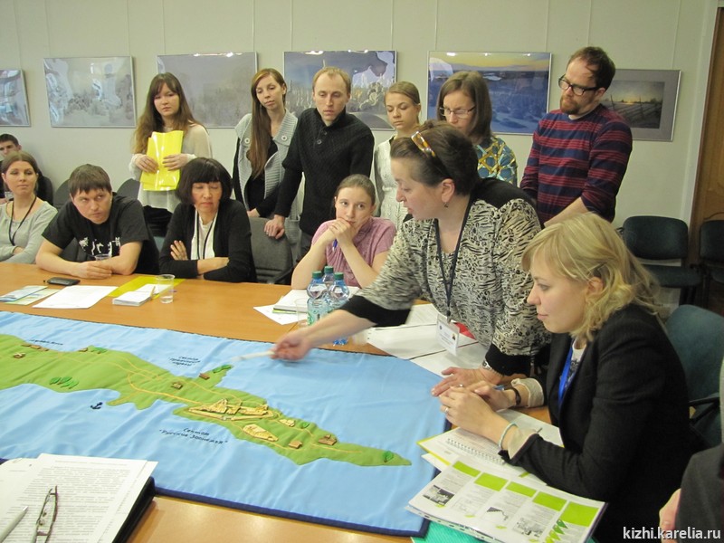 Сотрудники музея «Кижи» поделились с участниками семинара тем опытом, который уже есть в музее по созданию доступной среды. Большой интерес вызвала передвижная выставка «Музей „Кижи“ в вашем доме». Она создавалась специально для слабовидящих людей, но теперь активно используется для больных детей и людей, ограниченных в передвижении. По заявкам жителей Петрозаводска сотрудники музея привозят выставку на дом: есть возможность «путешествовать» по острову Кижи с помощью тактильной карты, самому собрать амбар из деревянных деталей, рассмотреть модели Преображенской и Покровской церквей, колокольни, детали убранства крестьянских домов.