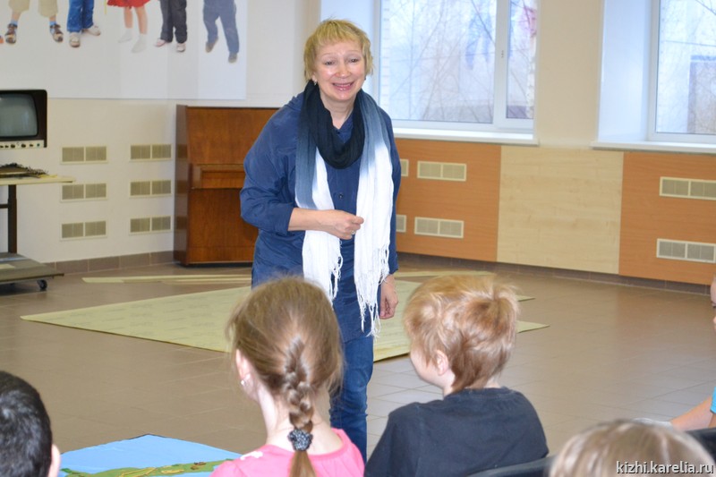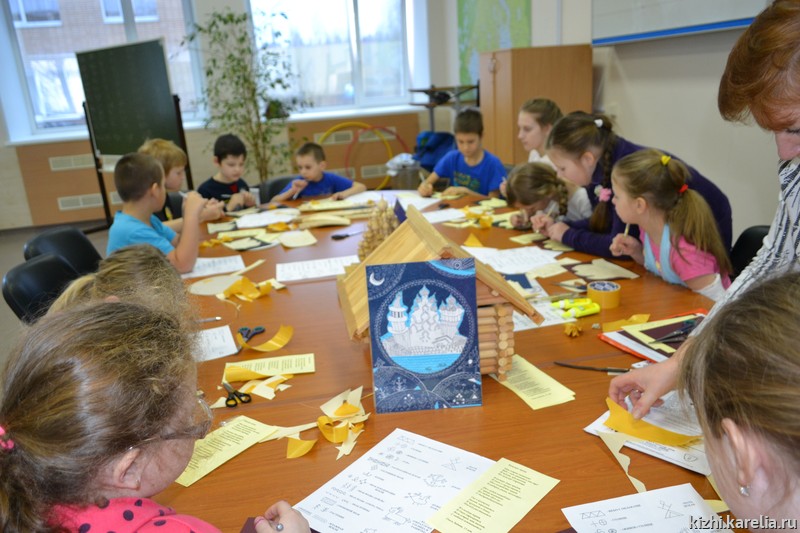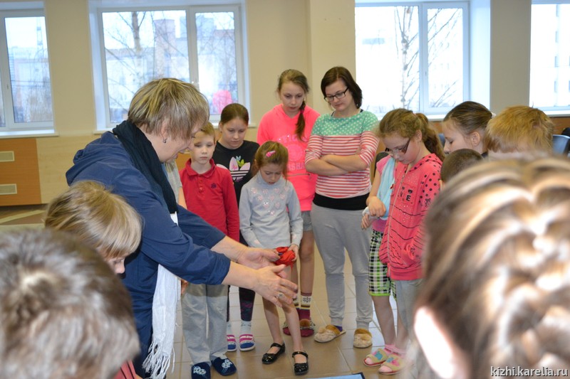 С детьми занимались начальник отдела «Детский музейный центр» Марина Кочетыгова и заместитель начальника отдела Наталья Архипова. В занятии участвовало более 20 детей из Муезерского, Медвежьегорского, Калевальского районов Республики Карелия, а также из Петрозаводска. С помощью передвижной выставки «Кижи в твоем доме» детям удалось «побывать» на острове Кижи, познакомиться с достопримечательностями музея-заповедника «Кижи», узнать, как строились наши памятники, своими руками собрать амбар.