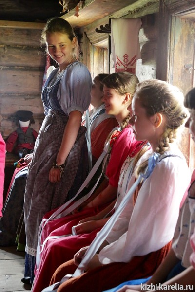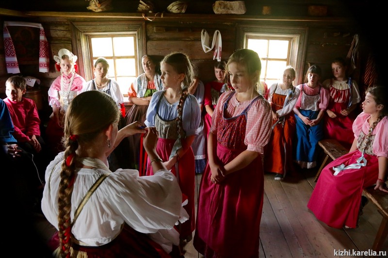 В программу пребывания группы вошло много занятий, посвященных не только знакомству с достопримечательностями острова, но и «погружению» в стихию народных игр, обрядов и обычаев. Огромную помощь в реализации программы оказали участники Фольклорно-этнографического ансамбля музея-заповедника «Кижи», которые провели цикл занятий, посвященных теме свадебной обрядности, и дали детям из Литвы возможность стать участниками программы «Заонежская свадьба».