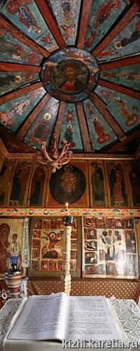 Музей-заповедник «Кижи» обладает сокровищем, подобного которому нет, не только в России, но, вероятно, и в мире. Это самая крупная уникальная коллекция потолочных икон, исполненных в ХVII-ХIХ веках для заонежских церквей и часовен, расположенных по берегам Онежского озера. Такие росписи выполнялись на отдельных иконных щитах, которые собирались в потолки куполообразной формы, получившие название «небеса». Общими усилиями архитекторов, научных сотрудников и реставраторов удалось сохранить для потомков «небеса», находившиеся в большинстве храмов в аварийном состоянии. Музейная коллекция икон «неба» насчитывает 285 единиц хранения.