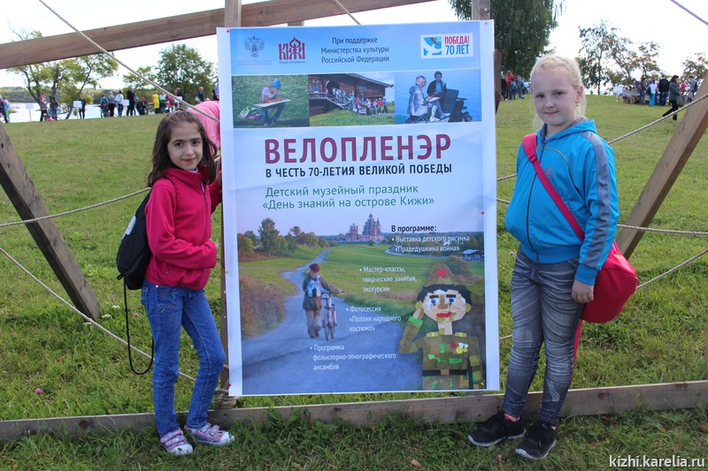 Практически все сотрудники музея участвовали в проведении Дня знаний и «Велопленэра в честь 70-летия Великой Победы». Гиды-экскурсоводы проводили интереснейшие уроки, участники фольклорно-этнографического ансамбля рассказывали о традиционных музыкальных инструментах Заонежья и водили хороводы, сотрудники отдела сохранения природного наследия подготовили несколько аквариумов с живой рыбой, а также терпеливо показывали гостям острова, что это значит на практике — раздельный сбор мусора. Детский музейный центр в полном составе вышел на проведение занятий и мастер-классов: от желающих сделать кижскую открытку, закладку, самостоятельно собрать амбар, научиться пилить, строгать, разгадать кижский кроссворд или решить задачу из «Кижской математики» не было отбоя!