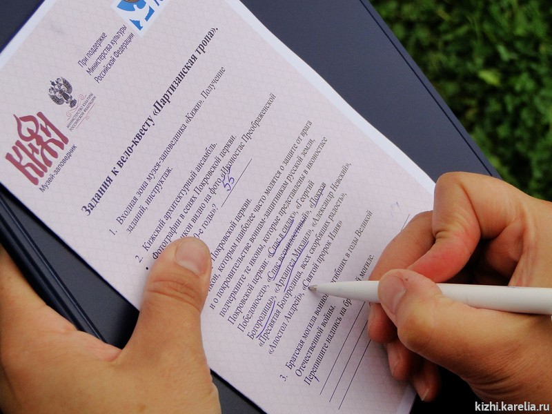 19 сентября музей «Кижи» принял необычных посетителей. Больше 100 участников, включая гостей из Москвы и Санкт-Петербурга, на велосипедах и пешком, посетили все памятники заповедного острова, выполняя различные задания на контрольных точках маршрута. Вело-квест под названием «Партизанская тропа» был посвящен 70-летию Победы и прошел при поддержке Министерства культуры России, которое выделило часть средств на его организацию.