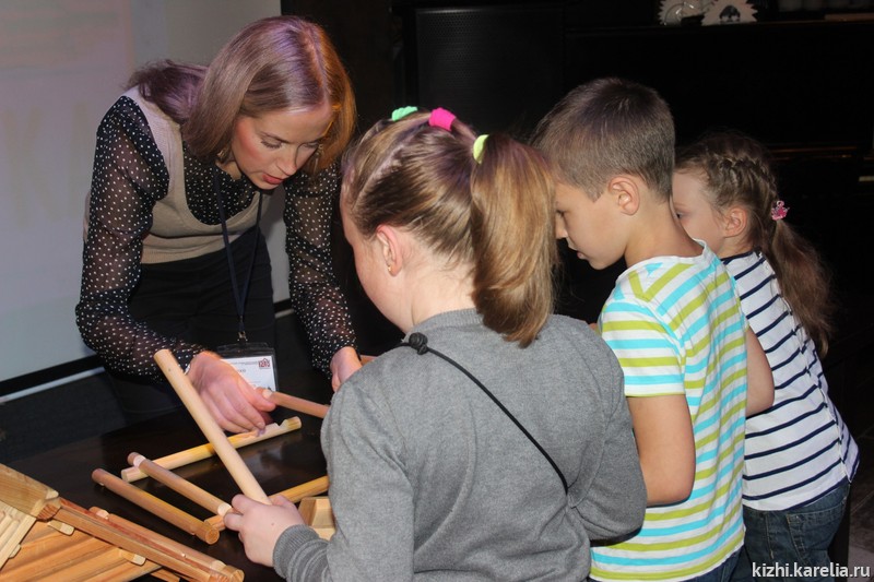На презентации азбуки дети совершили «путешествие» по острову Кижи с помощью тактильной карты, собрали модель амбара, с большим удовольствием научились писать буквы пером и делать закладки для книг.