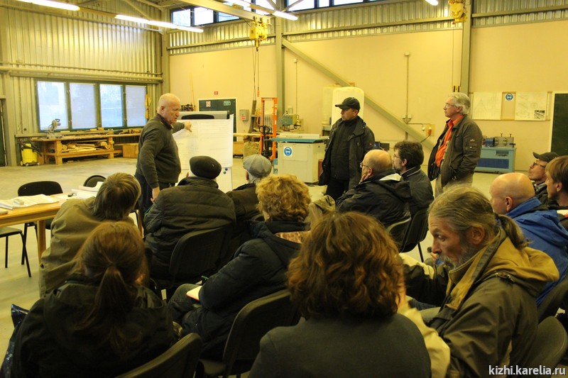 Участники миссии посетили Преображенскую церковь и Плотницкий центр музея, ознакомились на месте с ходом работ и начали обсуждение, главной темой которого стали способы укрепления конструкции памятника.