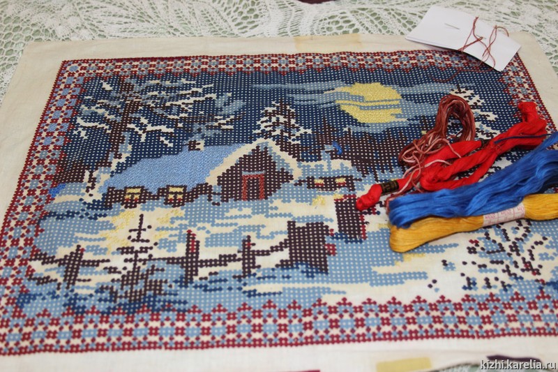 Полное название новой этнографической выставки — «Между модой и традицией. Женские рукоделия в городе и деревне. Конец XIX века — 70-е годы XX века». Автор выставки Людмила Трифонова — ведущий научный сотрудник музея «Кижи» — давно изучает такие темы, как крестьянский и городской интерьеры, народный костюм, традиционное искусство. Людмила Викторовна очень тщательно и с большой любовью отбирала экспонаты для выставки: это и предметы из фондового собрания музея «Кижи», в том числе мебель, скатерти, половики, костюмы горожанок и крестьянок, образцы вышивки, украшения, это и семейные реликвии сотрудников музея.