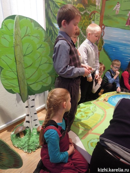 Юные посетители выставки станут активными участниками увлекательной и познавательной игры, почувствуют настроение, с которым загадывались загадки, азарт и удовольствие от поиска отгадки. Ребятам смогут отправиться в путешествие, полное приключений и загадок, побывать в карельской деревне, погостить в крестьянской избе, покататься на лодке и порыбачить на берегу озера, узнать, где в амбаре сусек, и совершить прогулку по лесу.