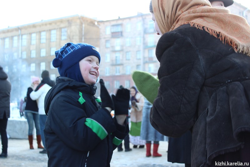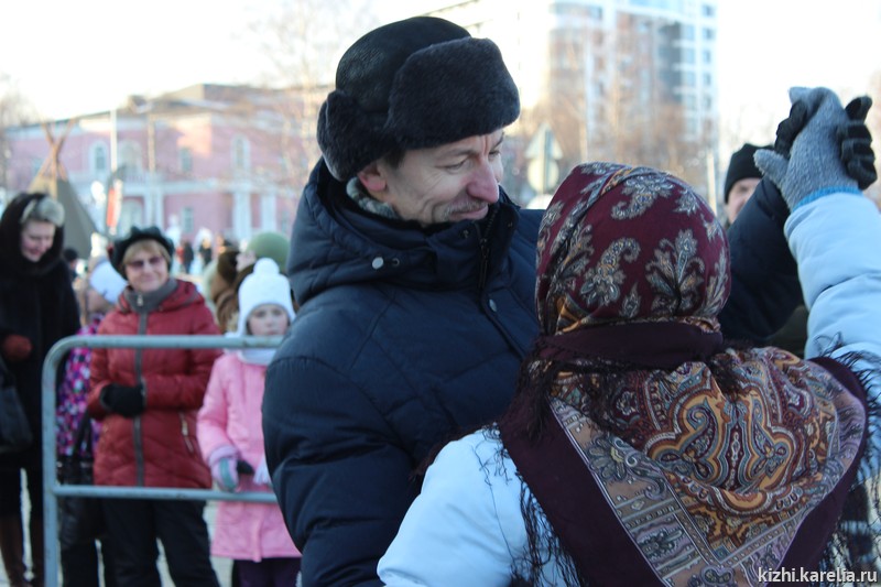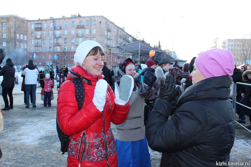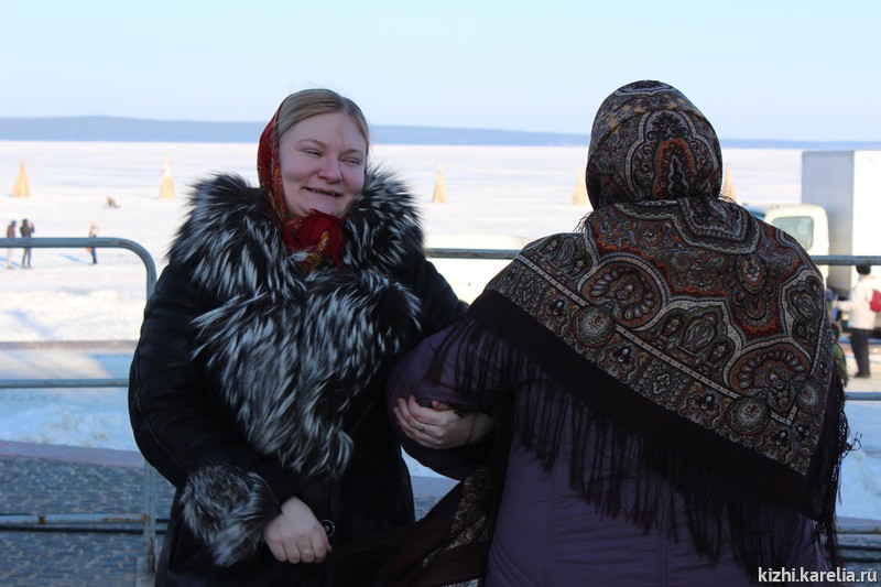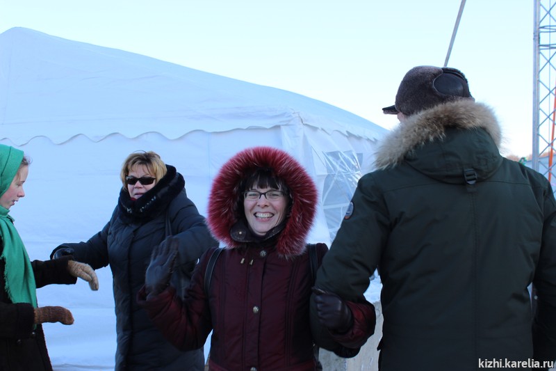 Ведущая праздника Марина Ноженко подробно рассказала гостям праздника о зимних экскурсионных программах, которые предлагает музей-заповедник «Кижи». Каждая из них — особенная, со своим колоритом, но традиционные заонежские игры и забавы на свежем воздухе есть в каждой. Символы и обязательные атрибуты зимних забав — лыжи, рукавицы и валенки, финские сани, коромысло и снегоступы были загаданы в непростых загадках, которые участники праздника с трудом, но отгадали. «Под гору — коняшка, в гору — деревяшка!» — что это? Правильно, финские сани. «Промеж двух морей, на мясных горах гнутый мостик лежит» — про что это? Конечно, про коромысло.