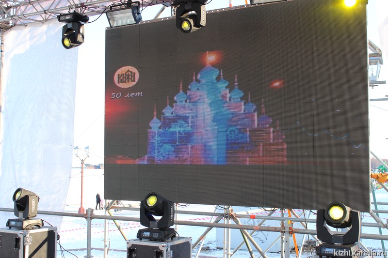 2016 год — особенный для музея-заповедника «Кижи», 1 января исполнилось 50 лет со дня его основания. Какой же день рождения без подарков? В честь своего юбилея музей сделал подарок 15-му фестивалю «Гиперборея» — это ледовая скульптура, представляющая собой стилизованный храм Преображения Господня на острове Кижи — композиция, над которой трудилась команда мастеров под руководством скульптора Александра Кима. С первого же дня фестиваля ледовая Преображенская церковь стала любимым местом для фотосессий: к ней приходили целыми семьями, фотографировали друг друга, и даже завели новую традицию — оставлять монетки в небольшой изгороди, построенной изо льда вокруг скульптуры.
