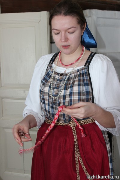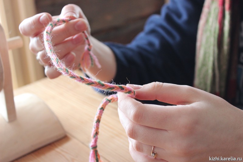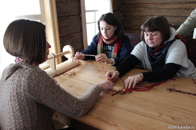 Мастер-класс в доме Берёзкина — это возможность не только прикоснуться к истокам древних ремёсел, но и научиться самому делать красивые и полезные вещи. Например, традиционный заонежский пояс. Не всем сразу легко даётся эта техника плетения! Но в любом случае это очень интересно и увлекательно.