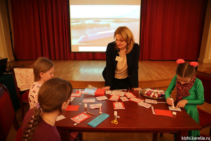 Вместе с сотрудником отдела «Детский музейный центр» музея-заповедника «Кижи» Натальей Медведевой гости фестиваля совершили виртуальное путешествие на остров Кижи и стали участниками мастер-класса «Открытка с обитаемого острова».