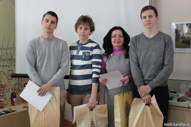 Также дипломы и подарки от музея «Кижи» получили воспитанники руководителя детской изобразительной студии «Кижская палитра» Светланы Петряковой: Леонид Дарвин, Даниил Цывакин и Даниил Шевляков. В этом году они участвовали в зимнем фестивале «Гиперборея» и сделали прекрасную снежную скульптуру «Чарли-Чарли, смешной чудак…».