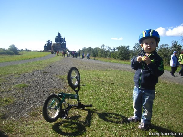 — Мы попали на остров Кижи во время праздника Преображения Господня, с погодой нам очень повезло, хотя, когда отплывали, было пасмурно. К сожалению, папа был занят и не смог поехать, поэтому мы взяли с собой бабушку. Беговел мы, конечно, тоже взяли, так как планировали добраться до Ямки. Сначала у нас была экскурсия, а потом мы отправились на ярмарку, перекусили, купили банку меда, до дома удалось довезти только полбанки. По дороге в Ямку мы сделали остановку, посидели на берегу, очень пригодились раскраски, которые мы тоже выиграли в марафоне. Правда, больше половины колоколен в раскраске «сгорели от пожара», после рассказа экскурсовода об опасности грозы для таких построек… Приятно удивило то, что во время праздника по всему острову были расставлены корзинки, полные яблок, которые мог попробовать любой желающий.