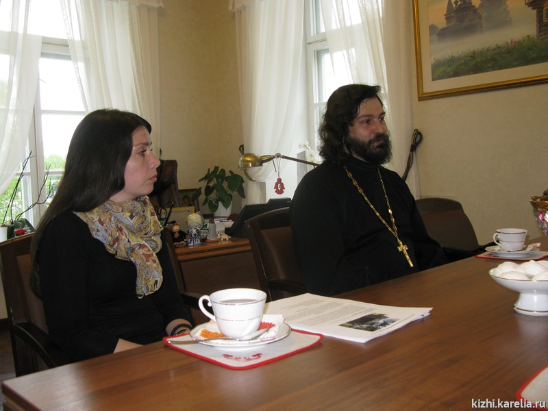 Директор музея Елена Богданова и руководитель добровольческого проекта о. Алексей (Яковлев) обсудили перспективы и ближайшие планы сотрудничества в деле сохранения деревянного наследия Карелии.