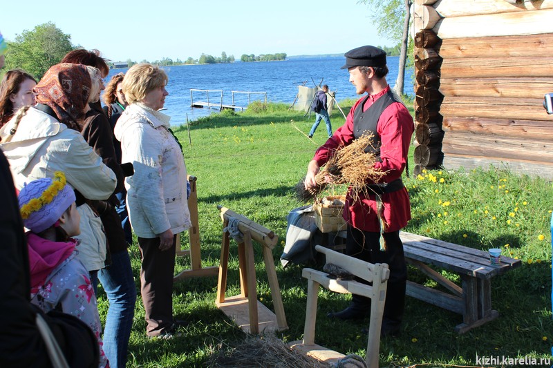 В «средневековой деревне» было и на что посмотреть, и чему поучиться: мастера не только демонстрировали, но и обучали всех желающих основам ткачества на дощечках, вязанию иглой и изготовлению ивовых свистков-манков. Сотрудник музея «Кижи» Борис Москин рассказывал и показывал, как в древности обрабатывали лён, а также предлагал всем желающим увезти с собой семена и посадить кижский лён у себя, на дачных участках. Особое праздничное настроение создавал ещё один специальный гость «Ночи музеев» на острове Кижи — фольклорно-этнографический ансамбль «Karjala».