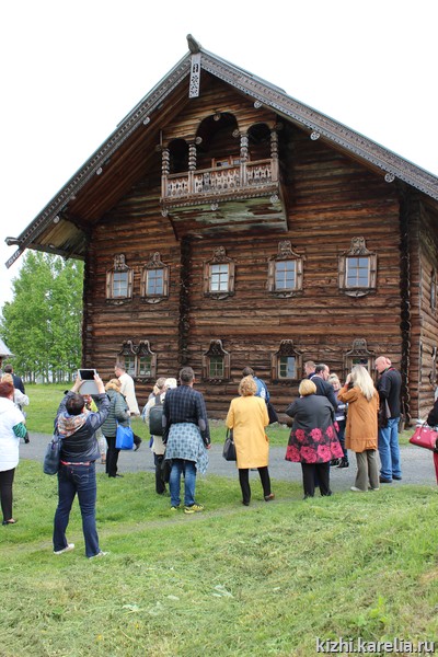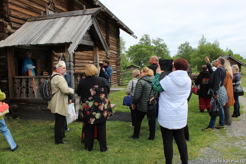 Участники II Всероссийского съезда – не просто туристы. Каждый из них у себя в культурном центре или доме творчества занимается сохранением и развитием народных традиций, прикладного искусства, поэтому поездка на остров Кижи для них – большой мастер-класс. Наверное, более внимательных слушателей у гида-экскурсовода Алексея Исаева ещё не было. Почему «завитки» над окнами дома Яковлева так напоминают архитектурные элементы на Зимнем Дворце в Санкт-Петербурге? Почему у колокольни Кижского погоста есть «ложная дверь»? Ответы на эти и многие другие вопросы узнали гости во время большой экскурсии по острову Кижи.