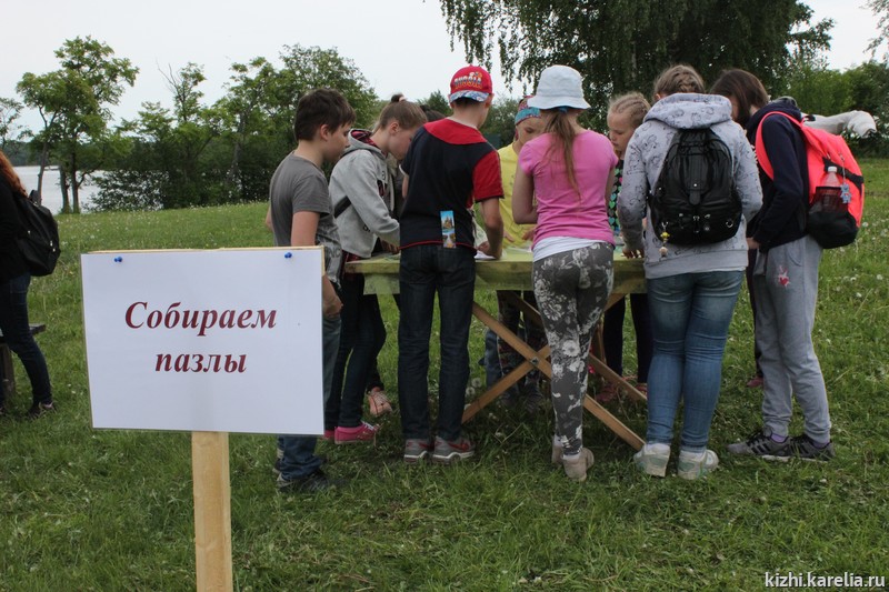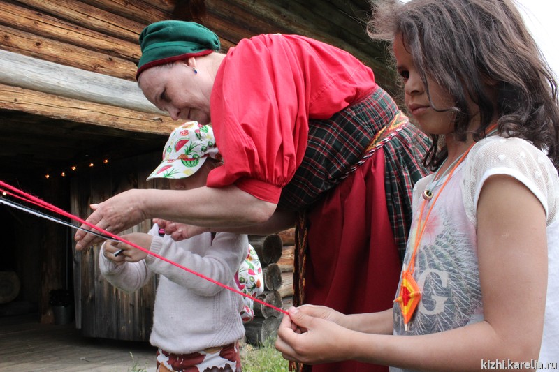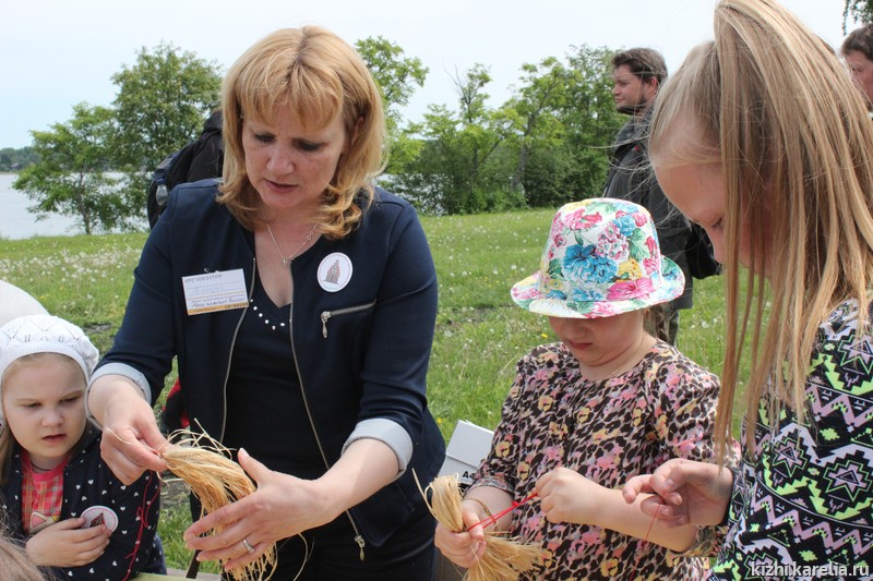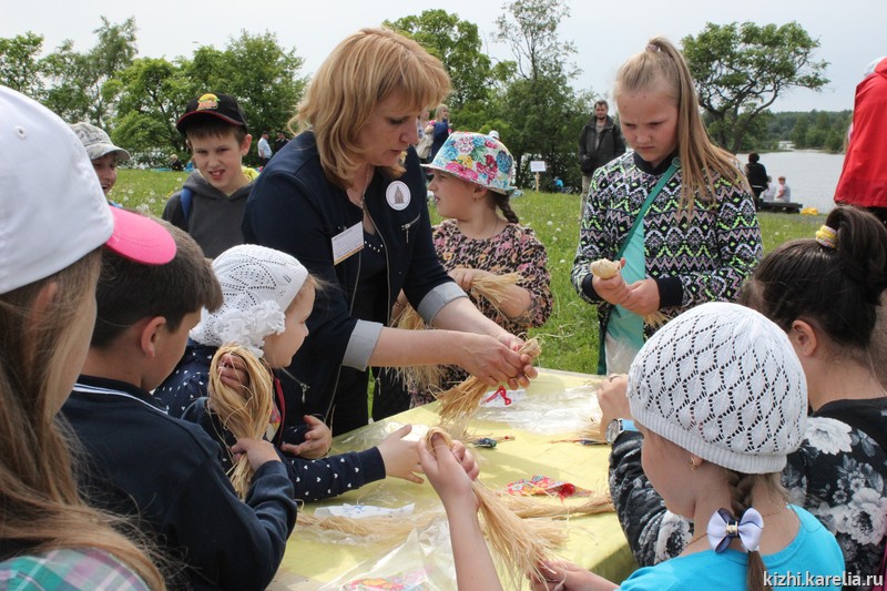На южной оконечности острова, у дома Сергеева расположились концертная площадка, средневековая деревня в миниатюре, «кижская столовая» и многочисленные мастер-классы. Плести заонежский пояс, обрабатывать лён, строить баню, делать игрушку из лыка, оберег из пряжи — этому и многому другому можно было научиться на детском празднике 1 июня. А ещё — как беречь природу, уважительно относиться к чистоте и красоте заповедного острова. Начальник отдела сохранения природного наследия Татьяна Павлова лично учила детей и взрослых, как правильно сортировать мусор. Просветительской деятельностью в области экологии музей «Кижи» занимается уже много лет, и, как признаётся Татьяна Вячеславовна, есть результаты: туристы на острове не мусорят, хорошо понимают, что такое раздельный сбор отходов.